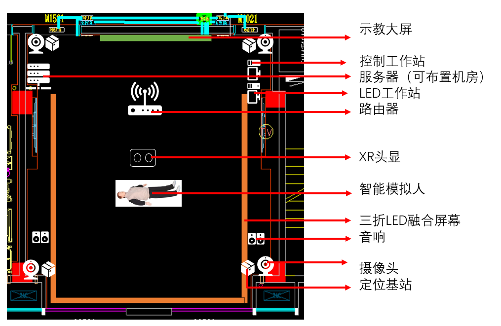 虚拟情境实训平台需建设一间特殊的实训室。通过虚拟仿真实训教学能够给学习者提供一个特殊的救援场景,让他们感觉到和他们想要学习的知识处于同一个场景中间,这种存在感可以屏蔽周围环境的干扰,提高专注度,加强学生对知识的认知。