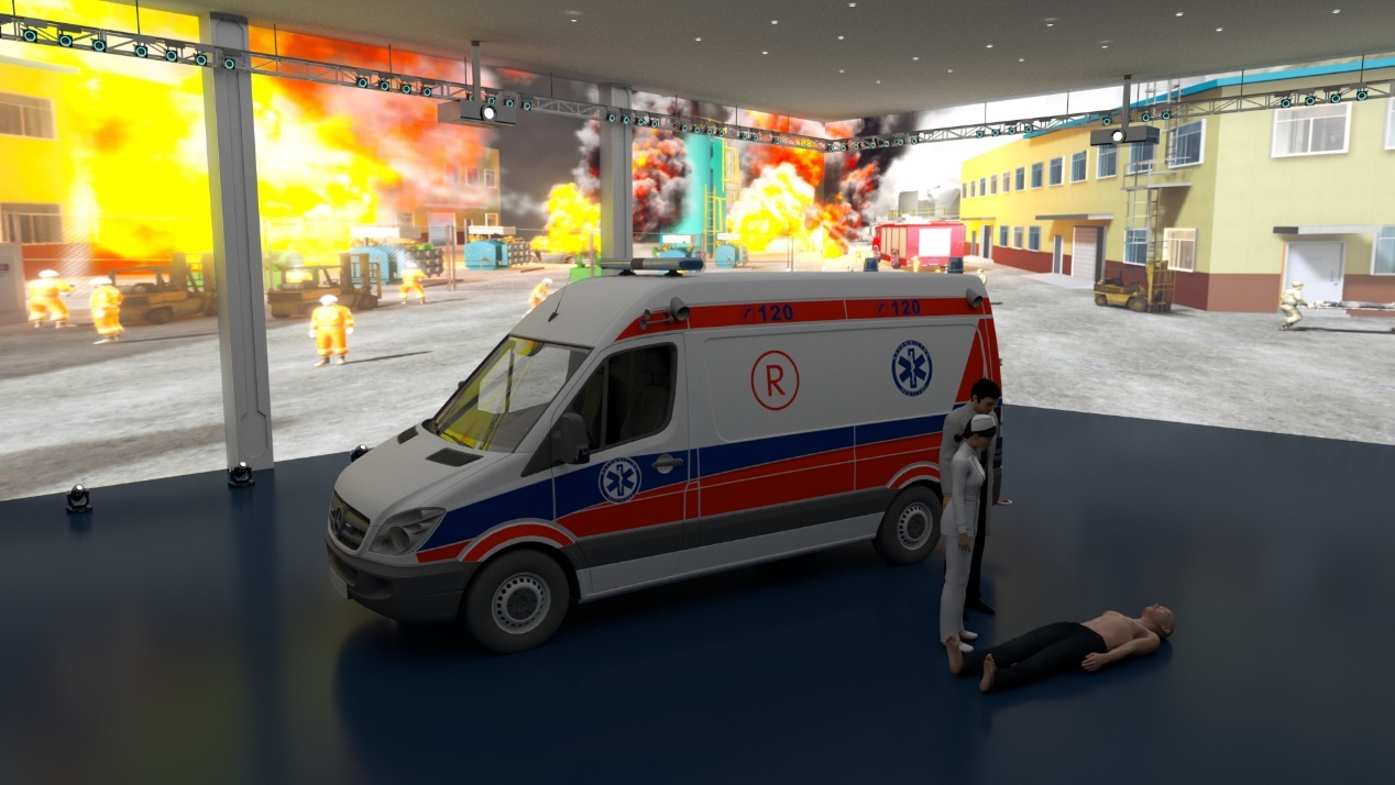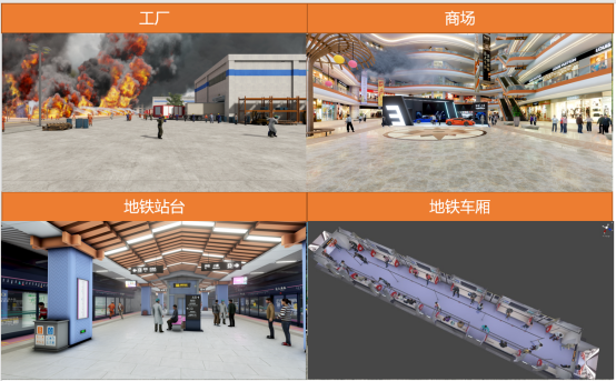 具备地铁内、冰雪灾害、山体滑坡、泥石流现场救援、核泄漏场景、海滩救援场景、急诊重症监护室(EICU)、战场、车祸现场、城市洪涝灾害、工厂、地震、商场、公园、城市场景等医疗救援3D虚拟现实场景